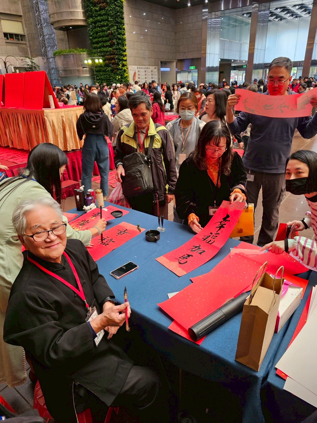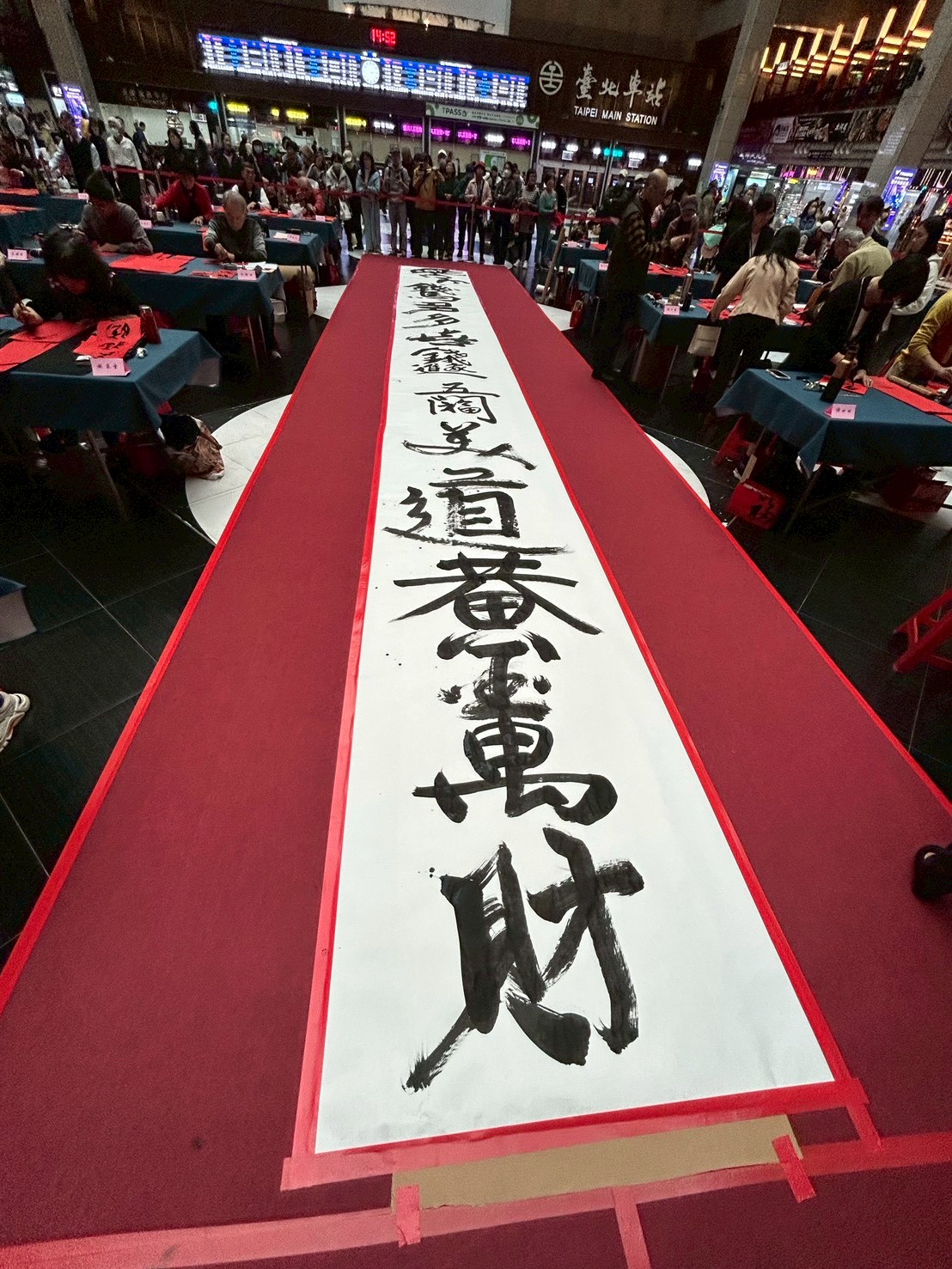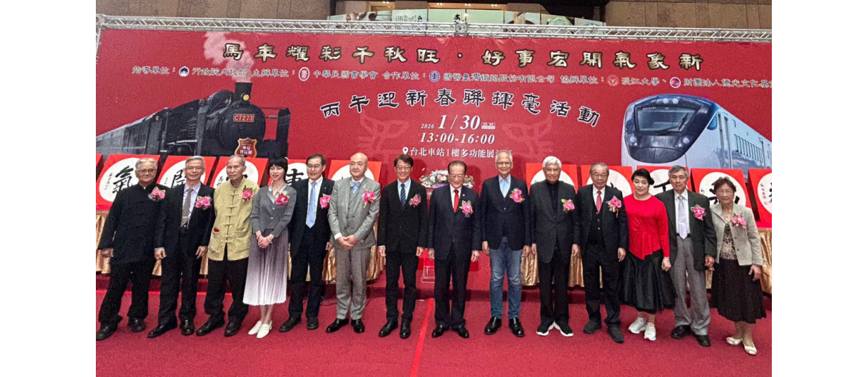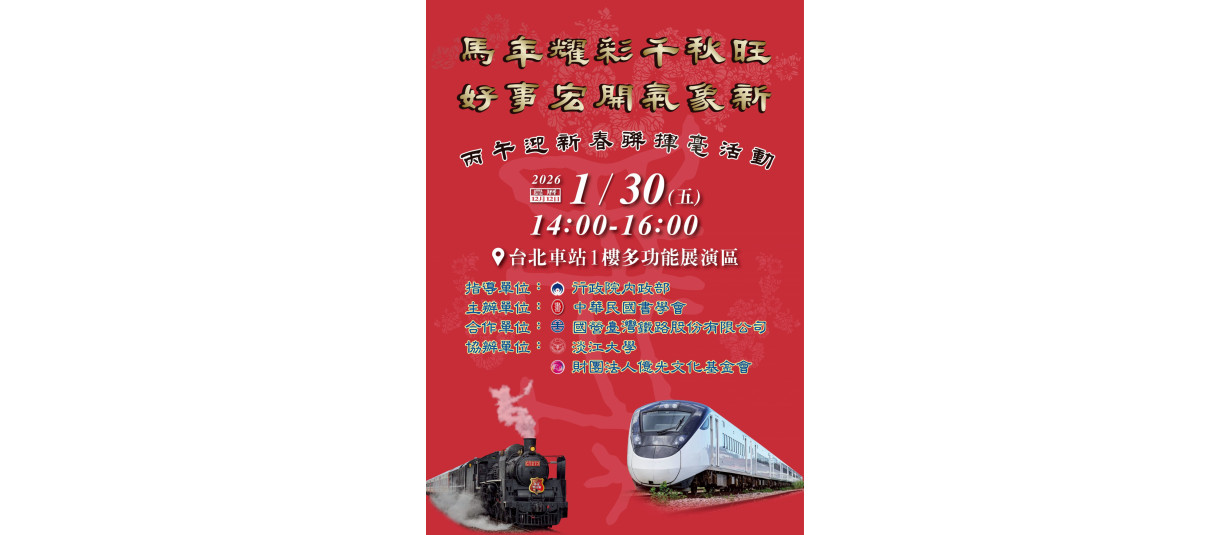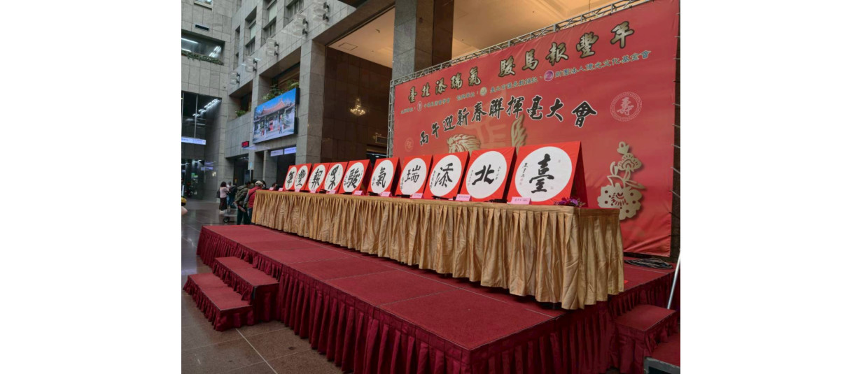115/01/30(五)下午時段,與國營臺灣鐵路(股)公司於臺北車站多功能展演廳合辦馬年春聯揮毫活動,現場邀請50餘位書家即席揮毫,致贈當日往來的旅客,並預祝所有旅客們金馬迎春,榮華富貴永保安康。