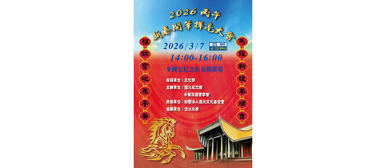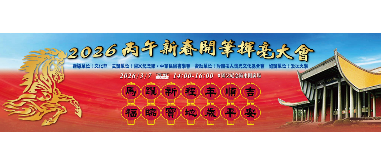 115/03/08(日) 14:00~16:00於臺北市國父紀念館正門廣場舉辦丙午新春開筆揮毫大會。